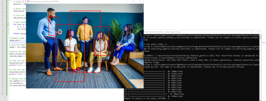 ما با بررسی تشخیص چهره مبتنی بر HOG با استفاده از OpenCV در پایتون شروع خواهیم کرد. کد ارائه شده یک تصویر را بارگیری می کند، آشکارساز HOG را اعمال می کند، و کادرهای مرزی را در اطراف چهره های شناسایی شده ترسیم می کند.